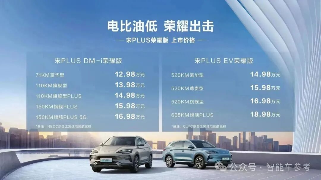 比预售价足足降了2.3万元,和前一天发布的比亚迪宋PLUS荣耀版降价幅度差不多。