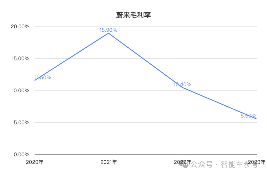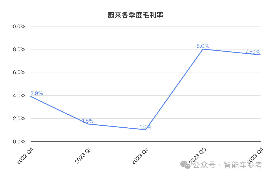 2023年蔚来车辆毛利率为9.5%,比2022年减少4.2个百分点。
