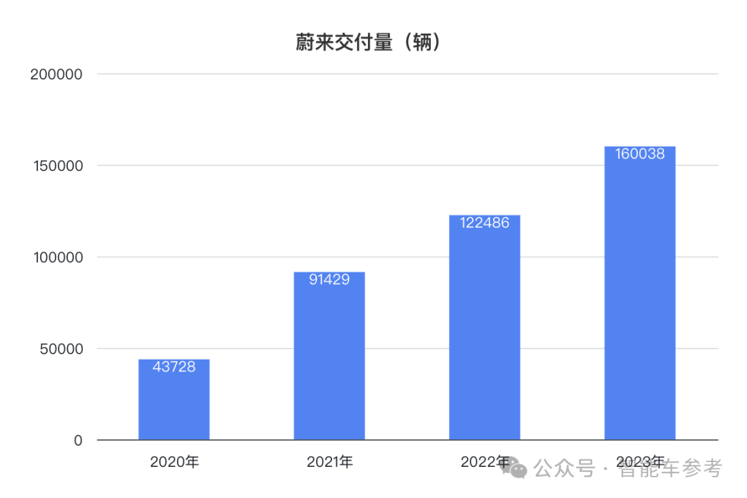 2023年度,蔚来的交付量,总营收都是成立以来的最好成绩。年度交付量首次超16万辆,为160038辆,比去年增加30.6%,每天能交付454辆。