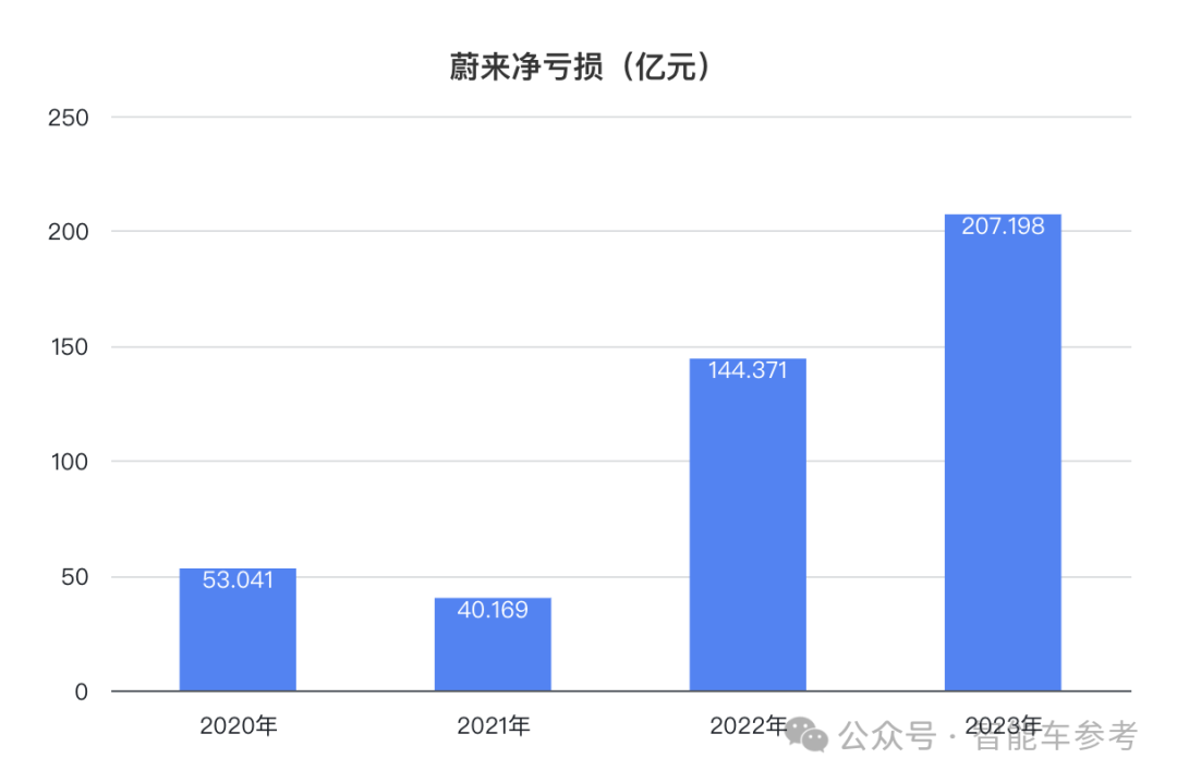 公司净亏损也达到史上最高,首次超过200亿元,为207.198亿元,比2022年增加43.5%,相当于卖一辆车要亏12.9万。