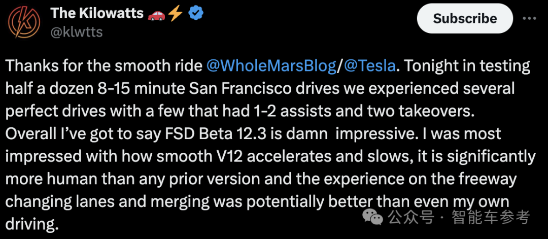 总结一下就是,虽然FSD Beta V12.3并不完美,需要继续训练迭代,但车主们还是比较满意的。