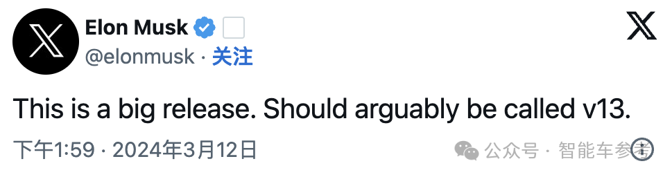 正当人们又认为这又是一次内部测试,和广大用户没啥关系的时候,当地时间3月16日,特斯拉突然对所有FSD用户推送了V12.3的更新。