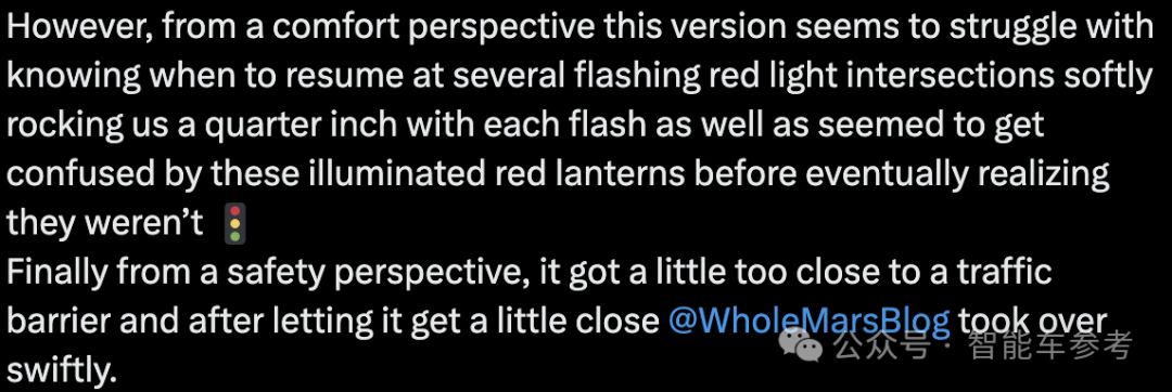比如在高速上系统没有选择正确的车道,导致错过出口,“至少没有做什么危险的事情”: