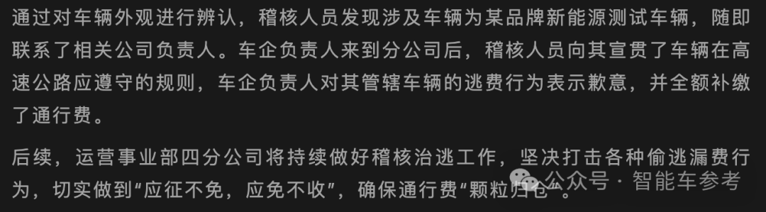 不过天津高速已经联系到相关车企负责人,该车企负责人表示歉意,同时全额补缴了逃掉的通行费。