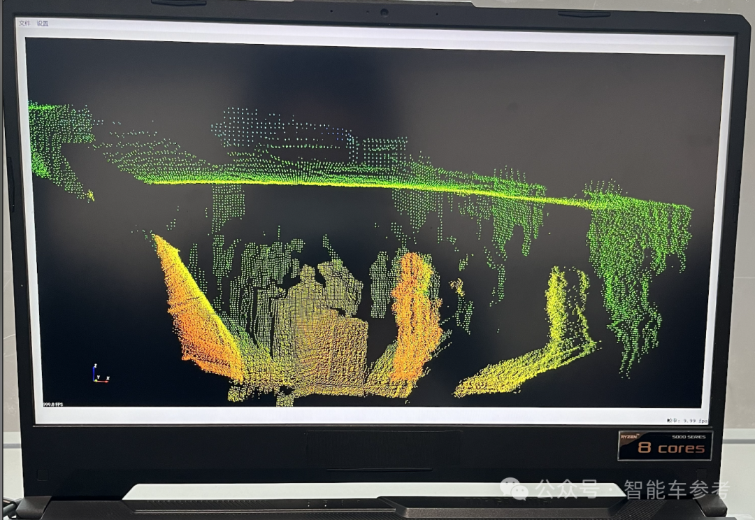 现场也放置了这颗激光雷达,实时点云效果是这样婶儿的: