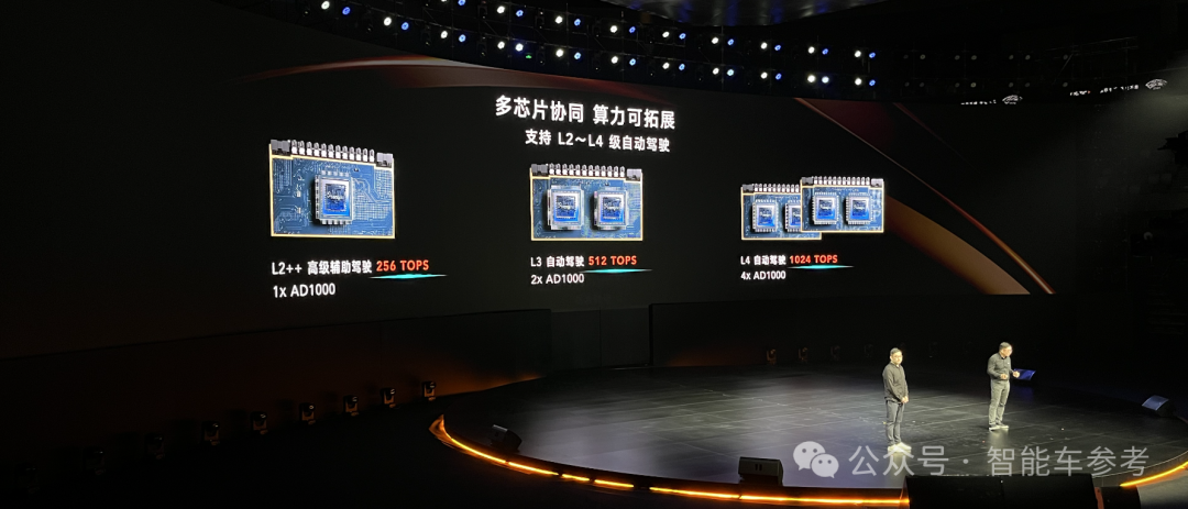 并且,龍鹰智驾AD1000支持多芯片协同,1颗最高支持L2++高级智驾,2颗支持L3,4颗支持L4。