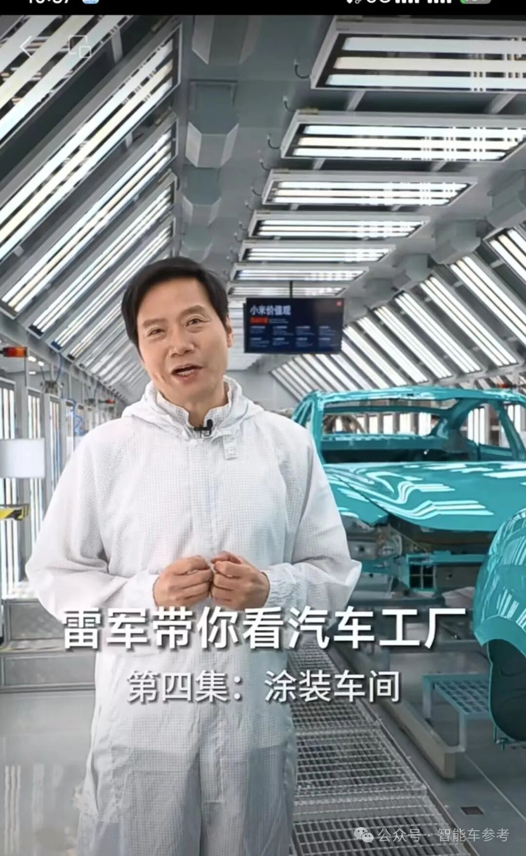 以上是小米SU7上市预热的环节之一,最近雷总还保持日更模式,每天为大家介绍小米汽车的工厂,展现了SU7压铸、焊接、涂装、总装和冲压等环节,整体自动化水平较高。