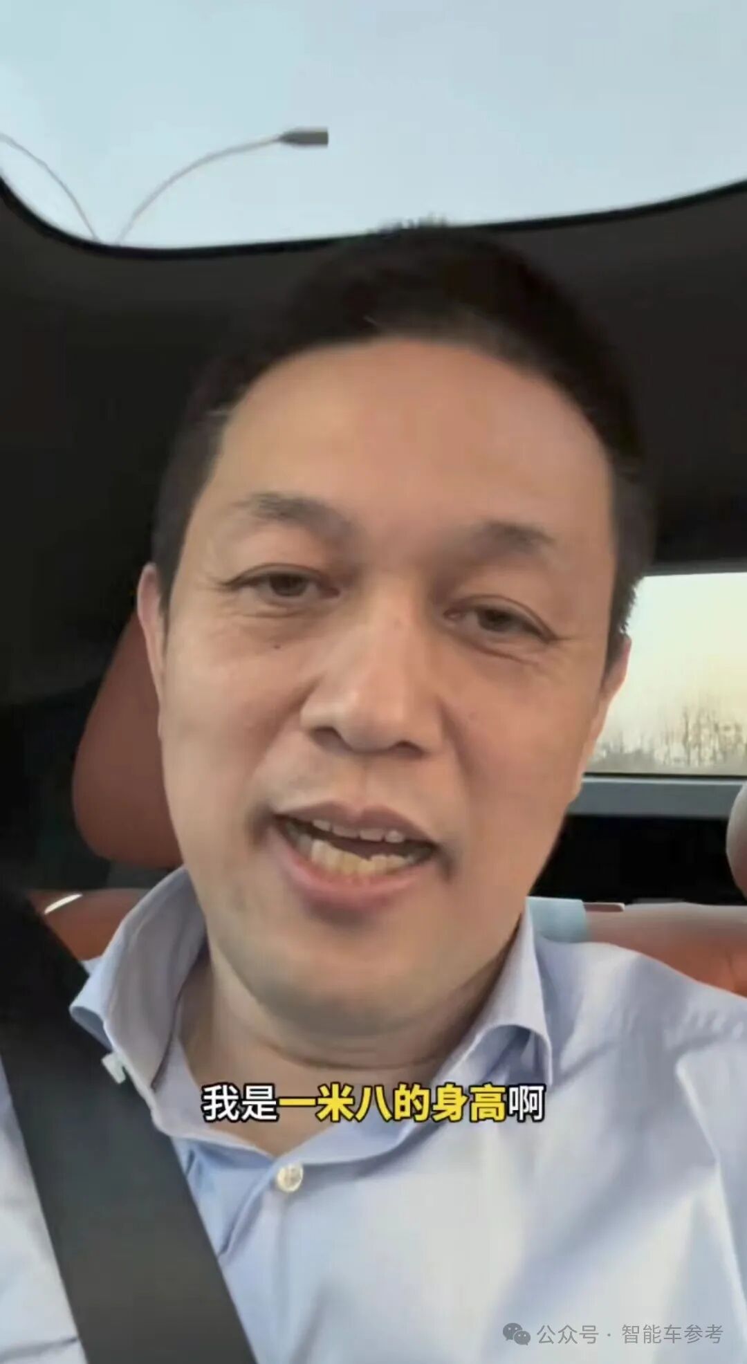 ?蔚来CEO李斌也疑似隔空致敬了一波小米,前两天他去试了试乐道第一款车的后排空间,称自己身高1米8。