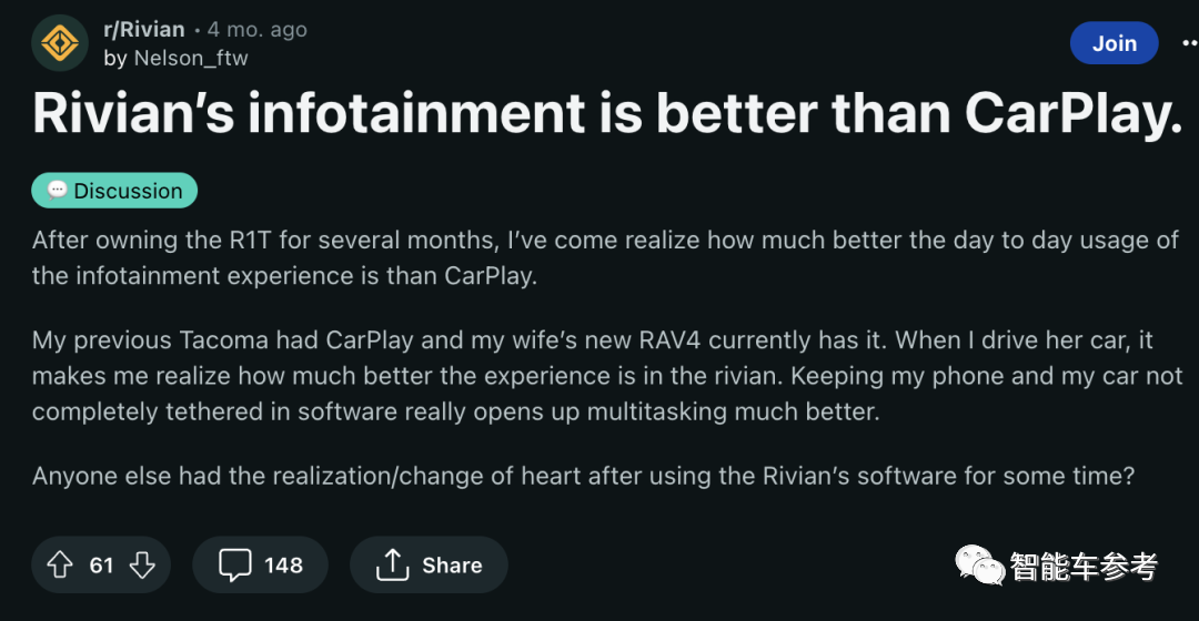 加入CARIAD前,在Rivian是负责软件的副总裁,在他治下Rivian车机得到了车主的好评,称其比苹果的CarPlay还好用。