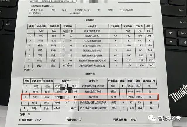 比如上文中举例的小鹏P5,维修费用高的主要原因就是激光雷达损坏,而一颗激光雷达的价格就达到8916元。