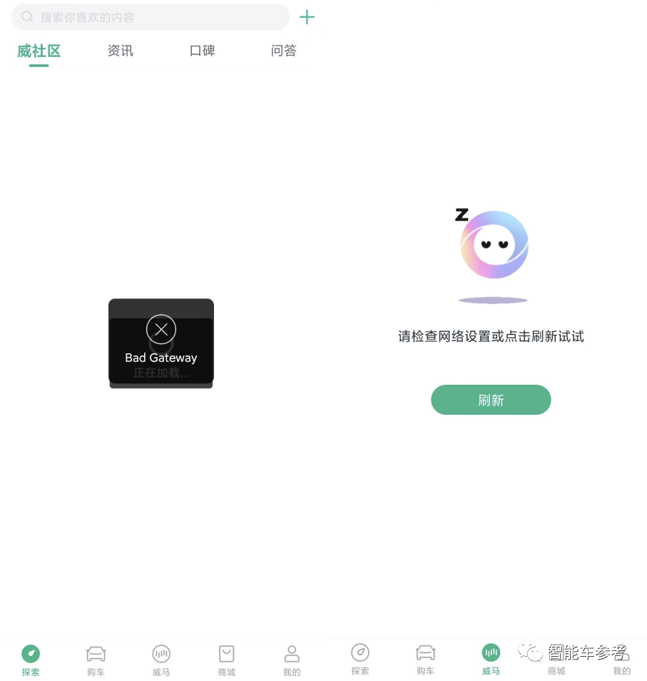 不过目前来看,威马随行APP打开后只会显示网络异常,社区、资讯等功能都无法使用。