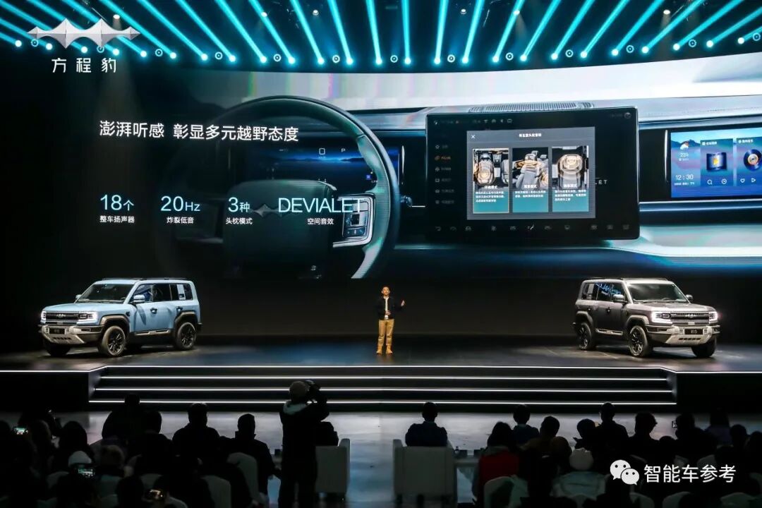 此外,豹5搭载帝瓦雷音响,全车18个扬声器、压缩机冷暖冰箱、3种不同香型主动香氛和多色氛围灯…
