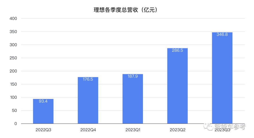 由此总营收首次突破三百亿,达到346.8亿元,同比大涨271.2%,环比增长21%。