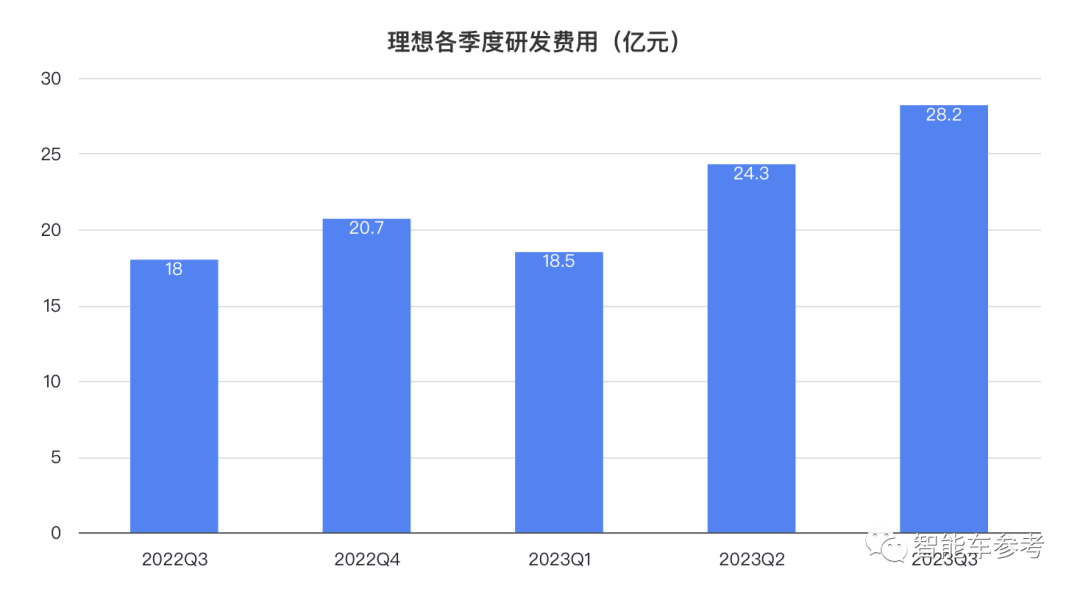 不过好就好在理想有钱,不缺钱花,三季度研发费用也增加到了28.2亿。