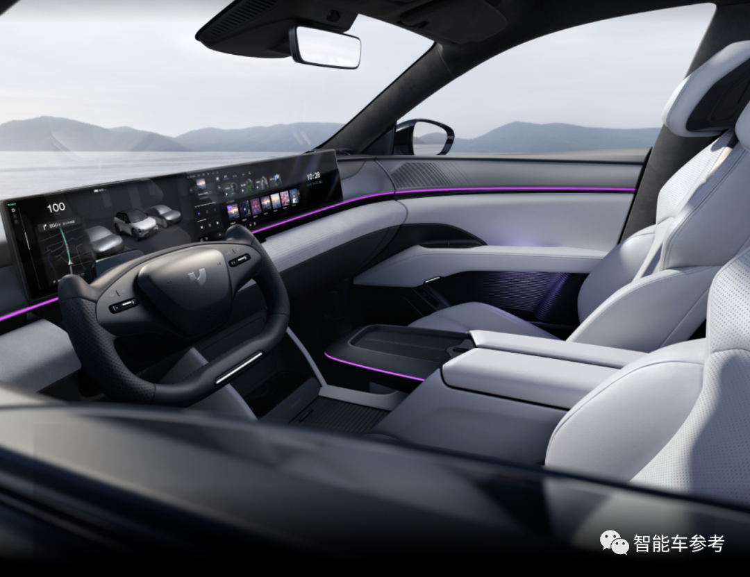 并且,配置U型方向盘后,配合车内35.6英寸的一体式大屏幕,视野更开阔。例如在启用智能驾驶系统时,前方屏幕遮挡更少。