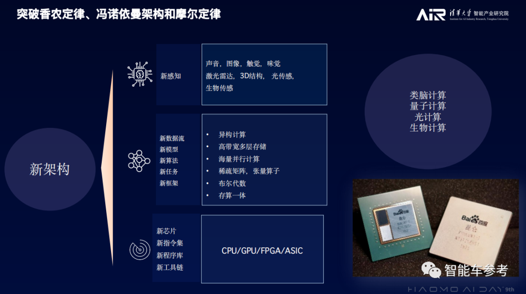 如果不突破,大模型不可能实现,这其中需要有新的传感方式,新的感知方式,需要有新的计算机体系架构的突破,包括芯片新框架等,现在主流的Transformer和CNN卷积神经网络也都不一样。目前,数字技术产业主要还是基于硅片的计算,未来可能会有生物科学、光计算、量子计算。