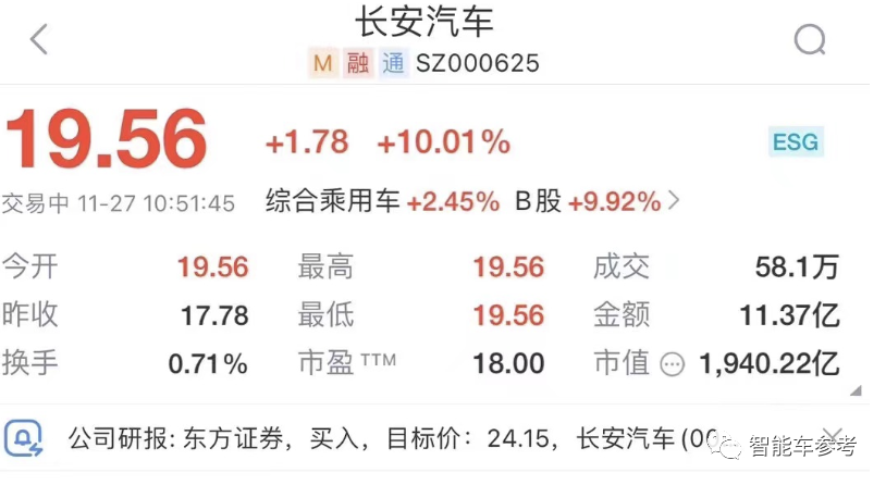 长安汽车上市公司主体,今日开盘股票已大涨超过10%。
