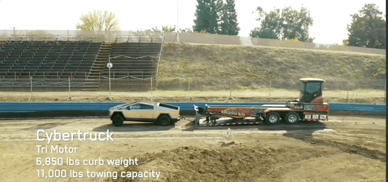 超强拖拽能力,Cybertruck最大牵引能力达到4.99吨: