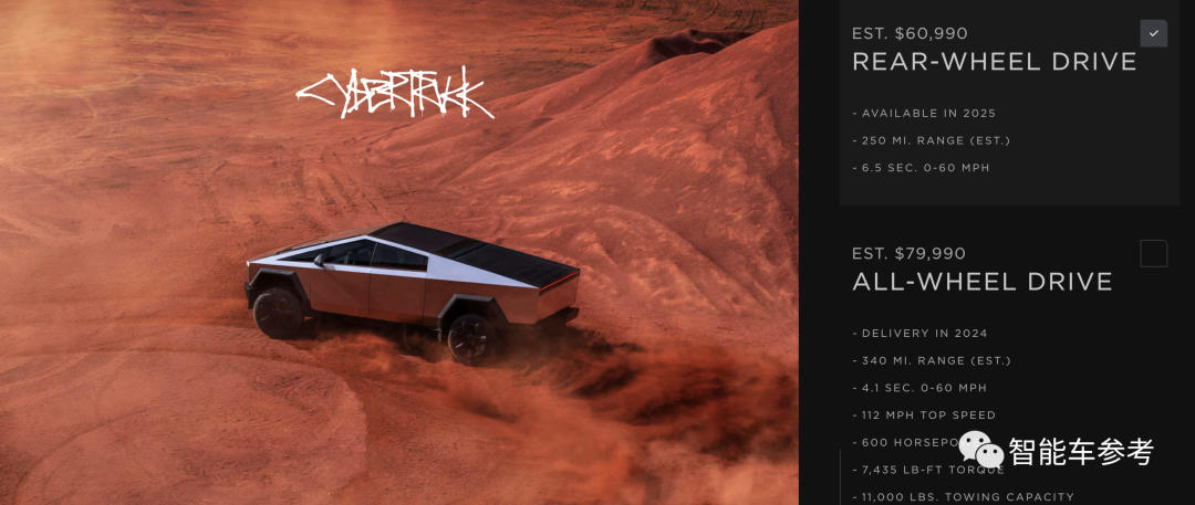 全轮驱动、赛博野兽2024年开启交付,而后轮驱动版2025年才能交付。