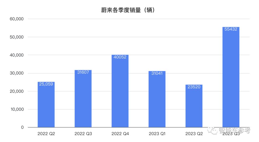 三季度蔚来销量55432辆,同比增长75.4%,环比大涨135.7%,是历史最好成绩。相当于每天销量超602台,其中SUV占比超67.8%。