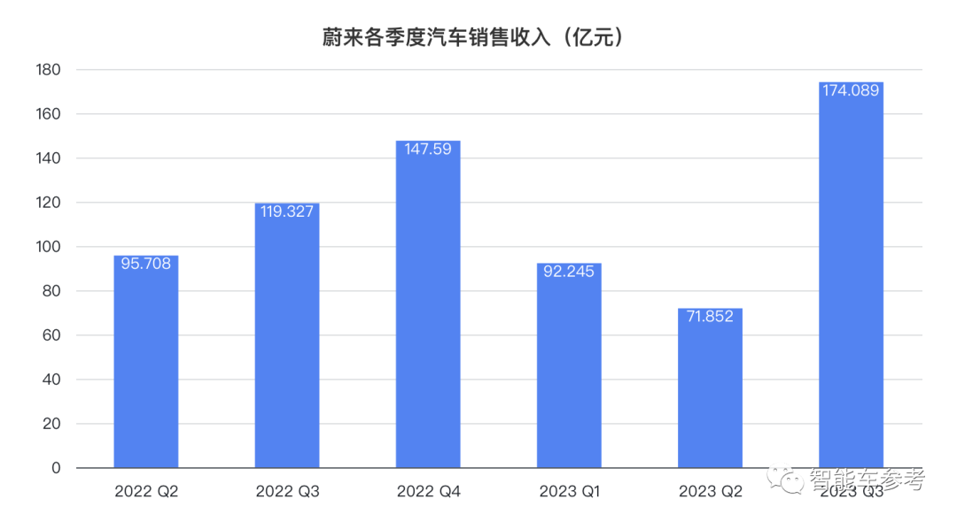 三季度汽车销售收入达174.089亿元,同比增长45.9%,环比大涨142.3%。