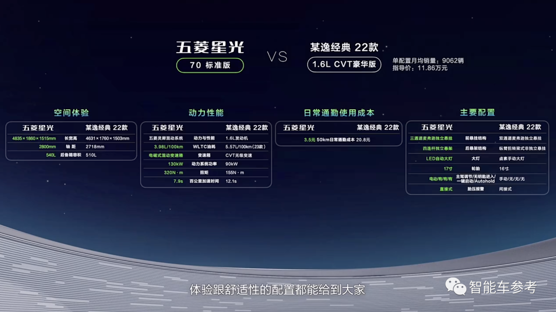 五菱表示,无论是空间、混动系统、电池还有各种配置以及价格,五菱星光均优于秦PLUS冠军版!