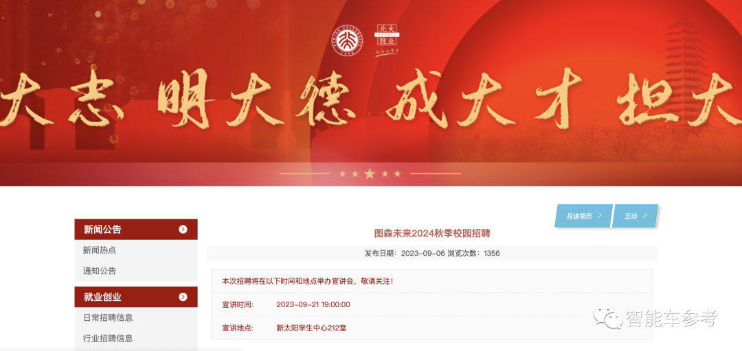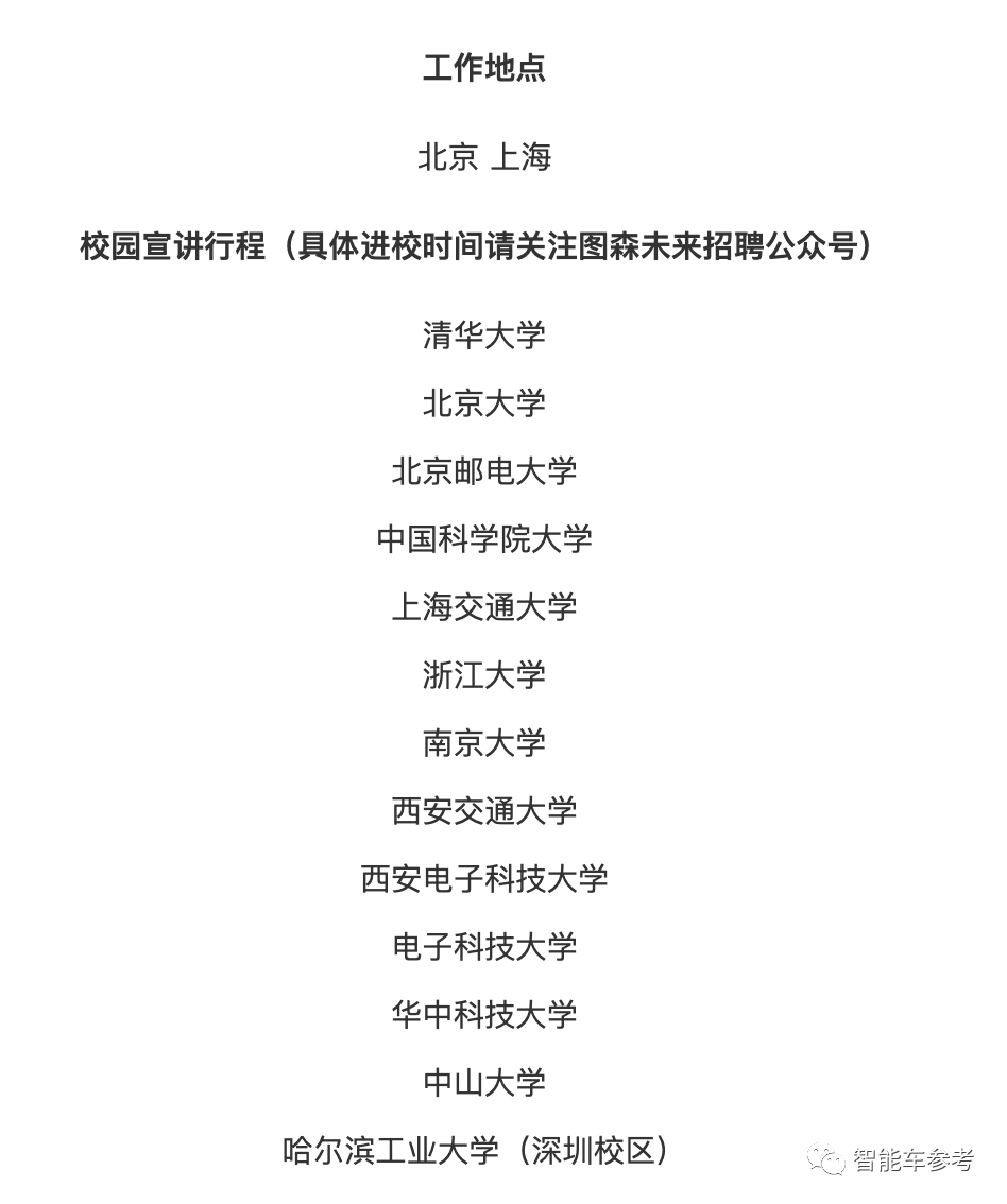 不只是有经验的专业人士,目前在一些学校官网上还能看到图森未来面向应届生的招聘: