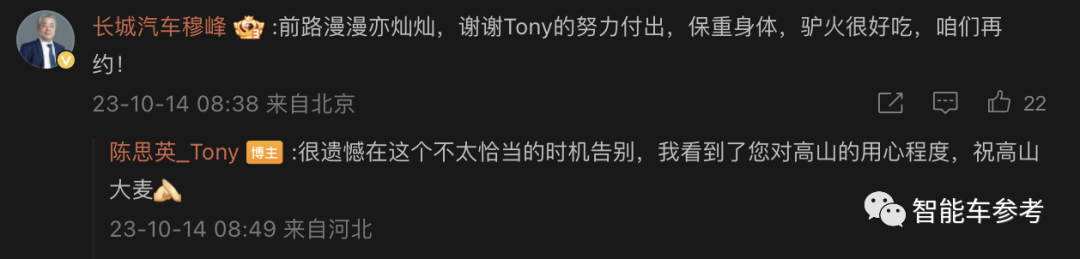 长城首席增长官李瑞峰更是单独发博,对陈思英的离开表示遗憾。
