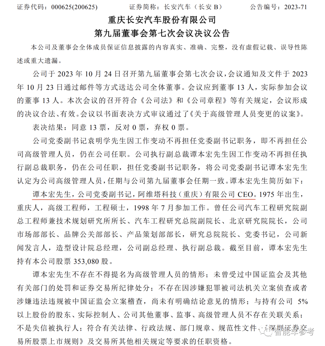 不过,在卸任之前,谭本宏已经升任长安汽车党委副书记,表明阿维塔已经给了他战功和政绩。