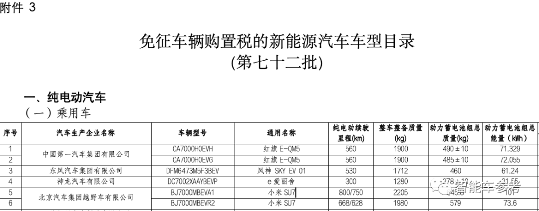 工信部公布了新一批免征购置税的新能源汽车,名单包含了多个热门车型,其中最受关注的还是小米SU7。