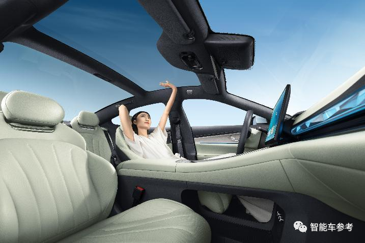 最大续航905km,零百加速可达3.7秒,800V高压平台,全系标配空气悬架,1700亿参数大模型加持智能座舱。