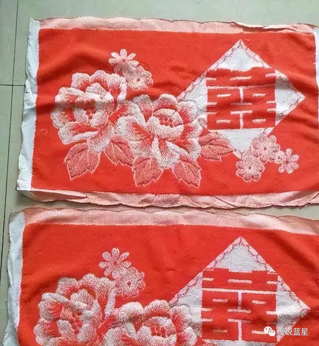 牡丹枕巾中的两朵大牡丹花,真是时代的经典,喜气而高贵。只是这个老物件,现在已经消失不见了。