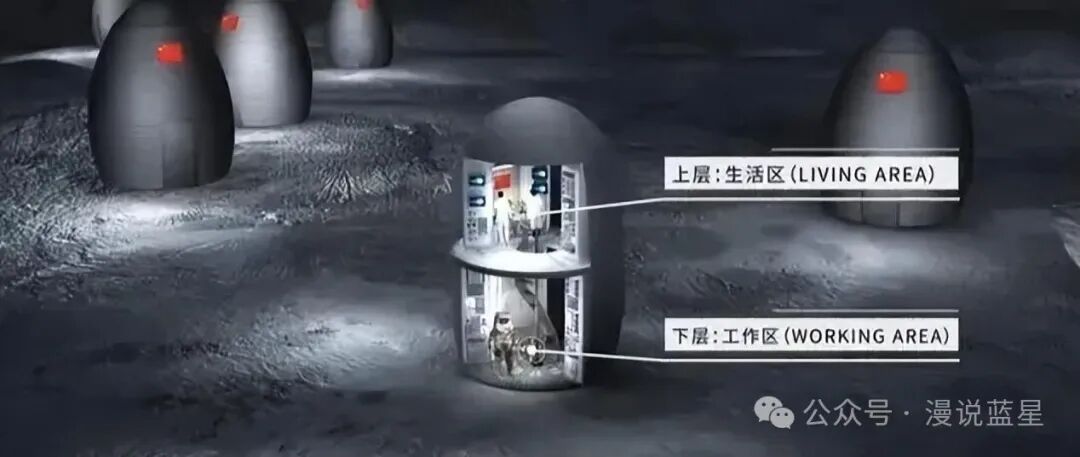 该方案的核心思路是把月球基地的主体工程建设在月球的地下位置。只有必须放在地上的设备才暴露在地表,并且其精密的核心舱(基底)是由地球建造后发射而来,而非在月球建筑而成。