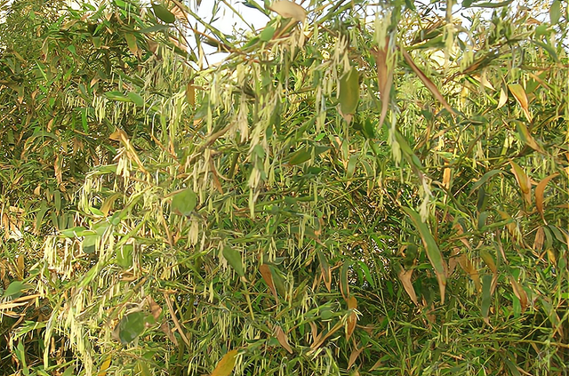 仔细观察竹子开花后的生长情况,会发现竹子会长出花穗,而花穗中会有很多的颗粒状,这些就是竹子的果实,被大家称为“竹米”,也可以说是竹子的种子。竹子开花后,产生的这些种子,落在土壤中后,会再次生长,因此,竹子开花也可以看成是“自救”,或者说是新的开始。
