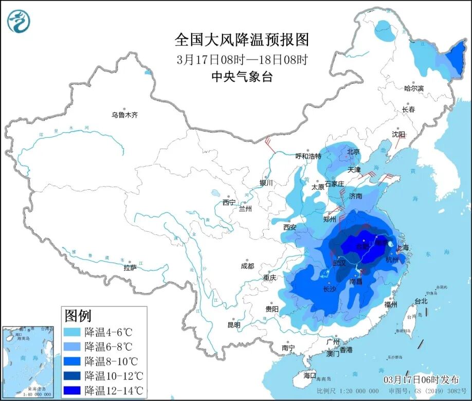 从17日天气预报得知,降雨降温还在持续,陕西中北部、河南中部、山东南部、江淮、江南大部、华南大部、西南地区东南部、台湾岛等地部分地区有小到中雨,其中,江苏中南部、安徽东南部、上海等地部分地区有大雨,局地有暴雨。另外,河南东南部、安徽中南部、江苏西南部、湖北东北部等地降温可达12℃以上。
