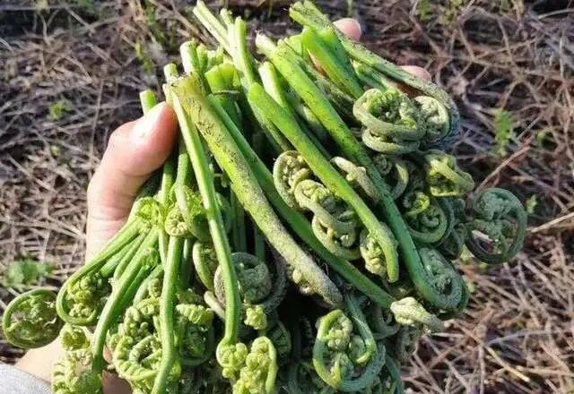 蕨菜也是众多野菜中被人们经常食用的之一,分布在我国各地,主要集中在长江流域及以北地区。蕨菜的叶片当作野菜吃,而蕨菜的根茎提取的淀粉,被称为蕨粉,也可以食用,并且价格不低。