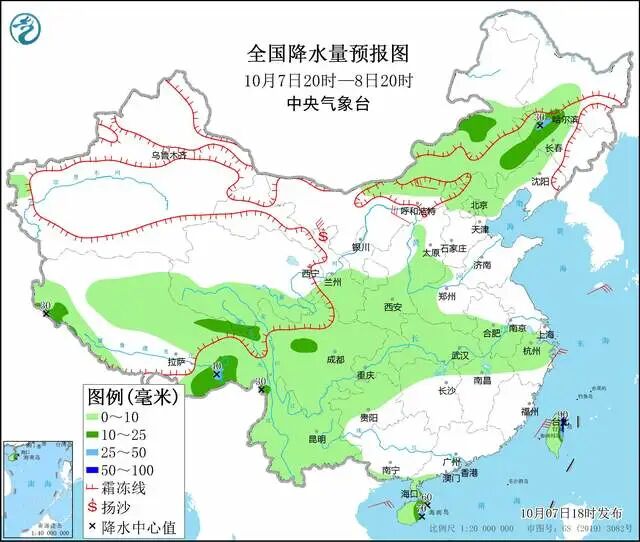 查看中央气象台天气预报,寒露当天(10月8日)降雨的区域不小,内蒙古中东部、河北北部的部分地区有雨夹雪或雨转雪;西北地区东南部、西藏大部、青海南部、西南地区大部、江汉、江淮西部、江南北部、海南岛以及内蒙古东南部、河北北部、辽宁西部、吉林西部的部分地区有小到中雨。