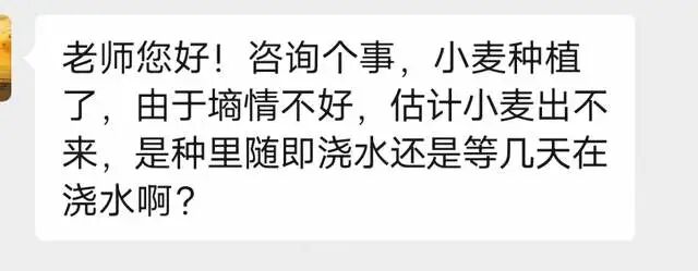 近几日,小帮手收到不少种植户的咨询,比如,有一位朋友问,小麦已经种植了,但是墒情不好,估计小麦出不来,想问问是小麦播种后立即浇水,还是等几天再浇水?本篇内容,小帮手就详细说说这个问题,大家看完后就有答案了。
