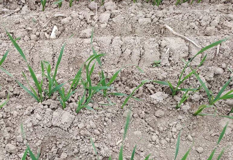 此次降雪,对于干旱的地块来说,还有利于小麦出苗。以河南豫东区域来说,此次降雨降雪前,已经好多天没有降雨了,田间土壤比较干旱,可以看下图,这是已经出苗的小麦田,土壤墒情小,如果继续无雨雪天气,再等一段时间,都有农户进行浇水了。因此,此次降雪省去了年前浇水,既节省了成本,又促进了小麦的生长。