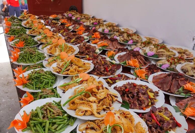 这里说的卫生条件差,一方面指的是饭菜的卫生,由于饭菜较多,一般会随意放置,用的还是大盆,一个菜做好之后,用空盆盖着,或者直接不盖,继续做下一个菜,另外,还会有帮忙的,都是直接用手接触到饭菜。另外一方面是环境的卫生,一般都是在自家门口、过道、路边等位置待客,不会刻意打扫,只要没有特别大的障碍物就行,把桌子摆上,就可以吃饭了。