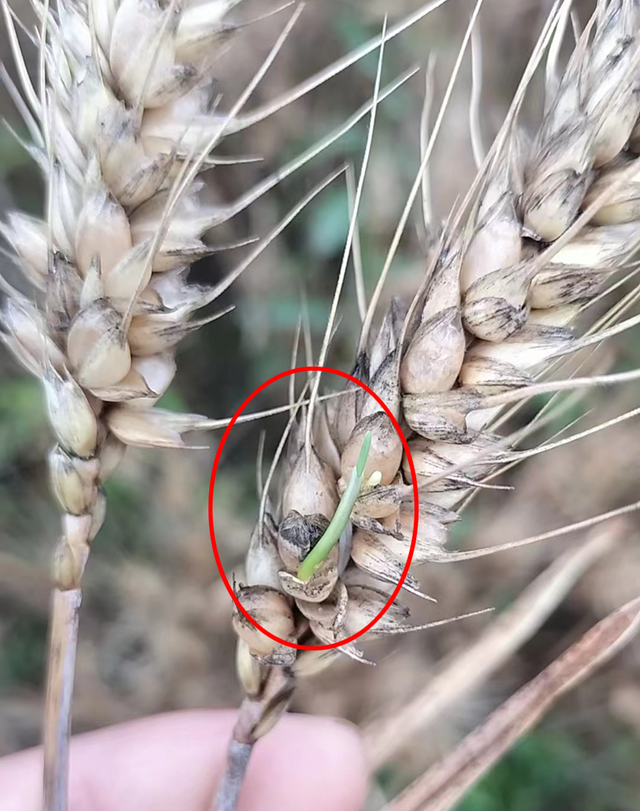 连阴雨天气导致的后果,如大家所看到的那样,田间还未收获的小麦,麦粒出现发芽、发黑现象,降低了小麦的产量和品质。