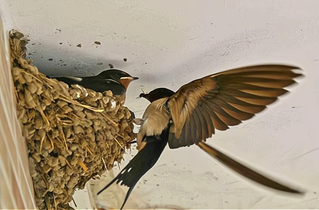 首先,燕子在家里筑巢的优点是显而易见的。燕子筑巢可以为农民家里带来好运,因为燕子在中国传统文化中被视为吉祥之鸟。此外,燕子还会吃昆虫,能够帮助农民家里控制害虫的数量。同时,燕子也是美丽的鸟类,可以为农民家里增添生活的乐趣。