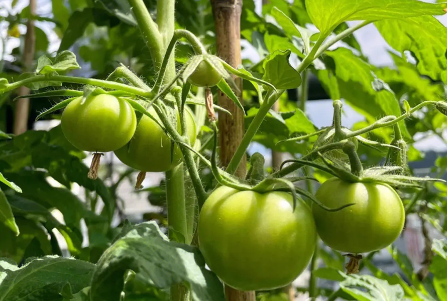 控旺措施一般有2种。其一,进行“打头”处理,也就是人为把番茄头部掐掉,不让其向上生长,促使养分供应到果实生长上。