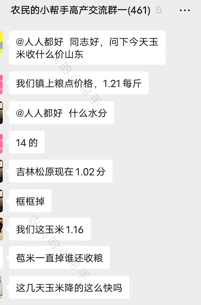 在小帮手高产交流群,群友们对于玉米价格也很关注,不少群友玉米收获后,一直在放着,就是等涨价以后再出售。