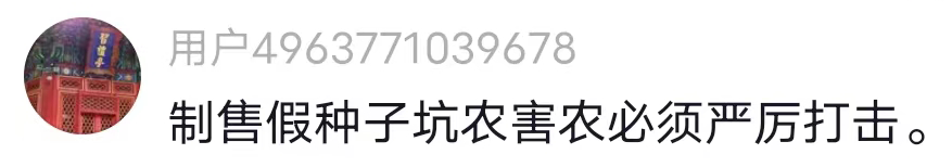 有些网友赞成打击假种子的违法行为,坑农害农行为必须严厉禁止,一定绳之以法。