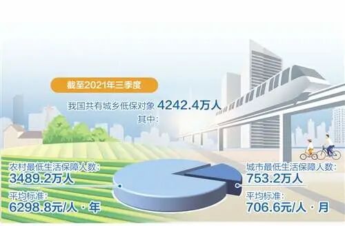 来看一组数据,截至2021年三季度,我国共有城乡低保对象4242.4万人,其中,农村最低生活保障人数为3489.2万人,平均标准每年6298.8元/人。而今年多地上调以后,这个数字还会增加。通过查询得知,今年上调的省份大概有以下这些地方: