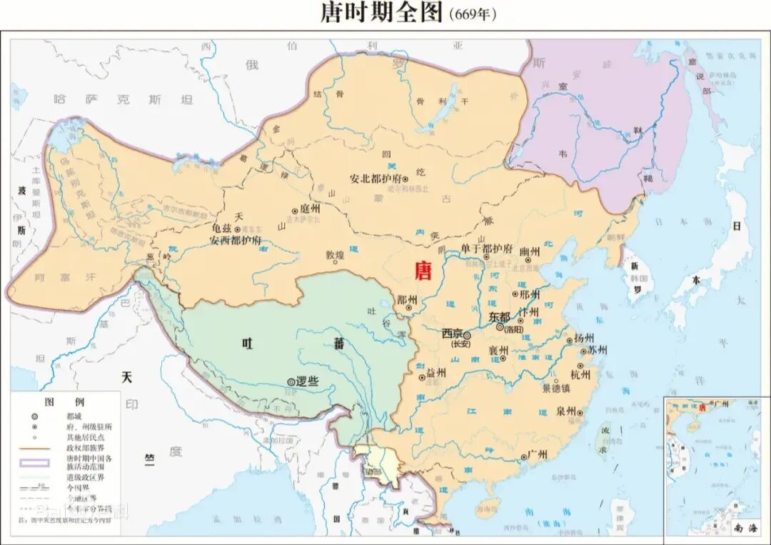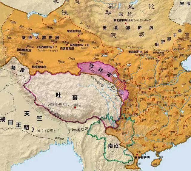 7世纪初唐朝在全国设立六大都护府,这些都护府位于唐帝国的边疆各地,是唐朝在各战略方向上的支撑点。如辽东的安东都护府、统御西域和中亚的安西都护府,越南北部设立安南都护府,守卫着唐帝国的南大门。
