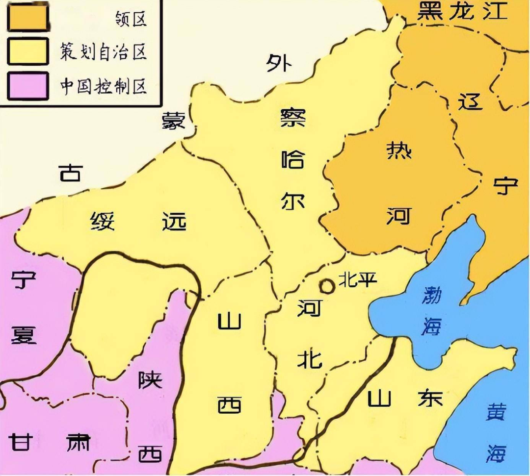 ▲塞北四省的绥远、察哈尔、热河被日军占据