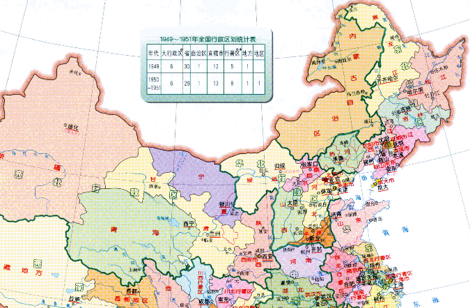 ▲1951年中国地图,依然保留塞北四省
