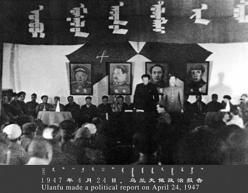 ▲1947年,内蒙古自治区成立大会